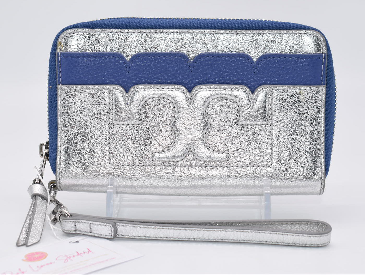 Tory Burch Scallop-T Metallic Wallet/ Wristlet in Marine Silver