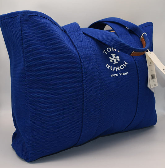 Tory Burch Large Canvas Tote Bag in Blue Dahlia