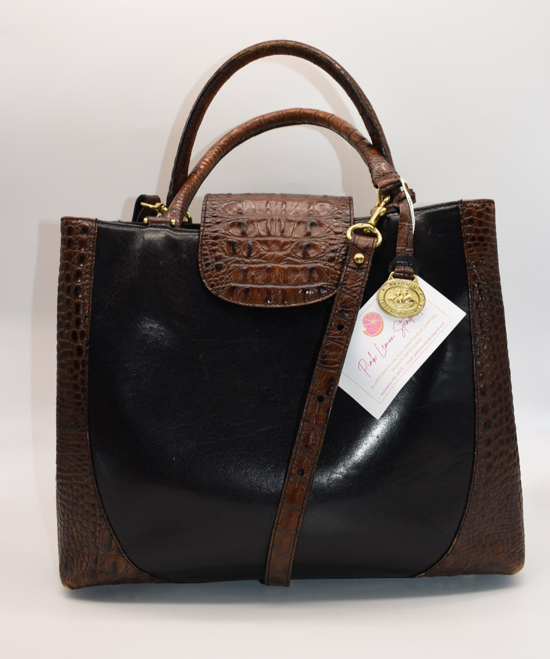 Vintage Brahmin Convertible Tote Bag in Black Tuscan Tri-Texture