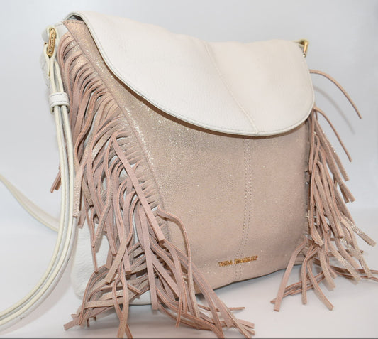 Vera Bradley White Fringe Meredith Leather Crossbody Bag