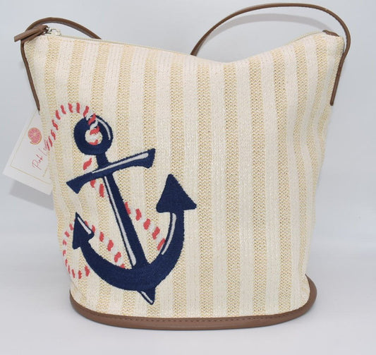 Vera Bradley Straw Bucket Crossbody Bag in "Regatta Anchor Navy"