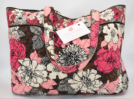 Vera Bradley East West Tote Bag "Mocha Rouge" Pattern