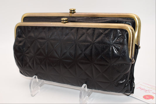 HOBO Lauren Clutch Wallet in Black Embossed Leather