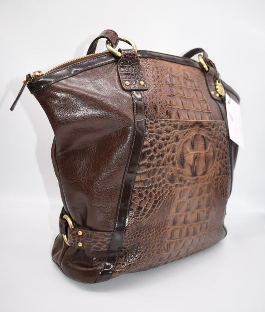Vintage Brahmin Large Woven Brown Leather Tote Bag