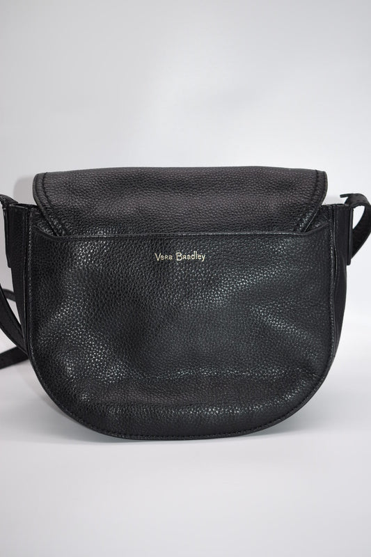 Vera Bradley Black Leather Carson Saddle Crossbody Bag