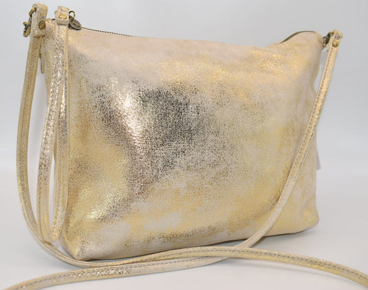 HOBO INTL Leather Convertible Crossbody Bag in Gold Leaf Shimmer