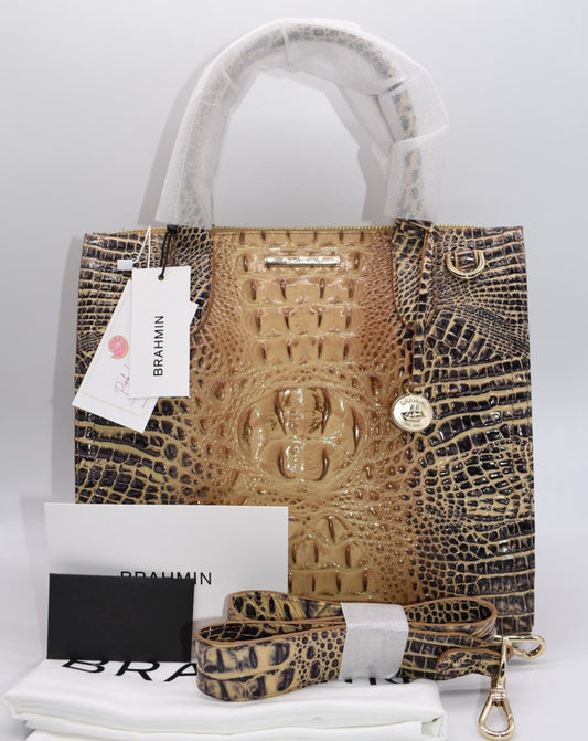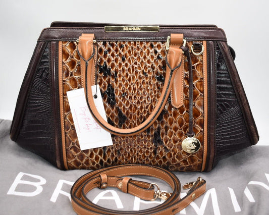 Brahmin Caroline Satchel Bag in Pecan Bellevue
