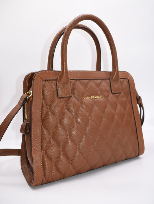 Vera Bradley Natalie Quilted Leather Satchel Bag in Cognac Brown Sycamore