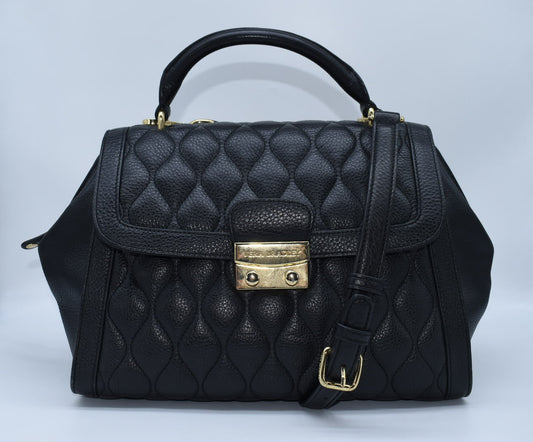 Vera Bradley Quilted Leather Stella Satchel Bag in Black