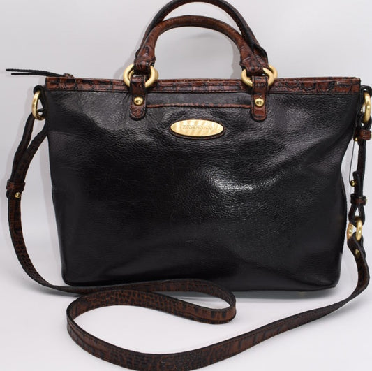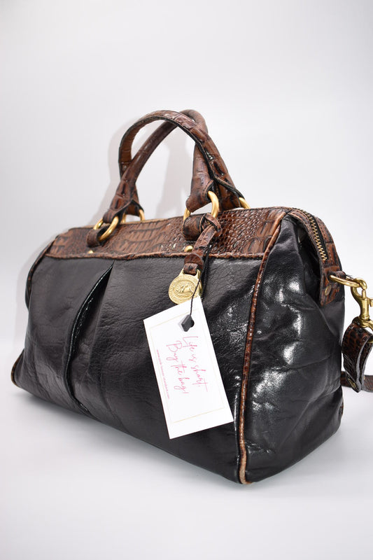 Vintage Brahmin Black Tuscan Tri-Texture Satchel Bag