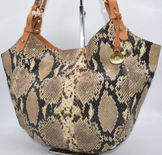 Brahmin Lorelei Python Embossed Leather in "Coffee Felix"
