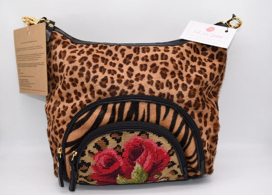 Clever Carriage Company Leopard & Hand Needlepoint Satchel Bag
