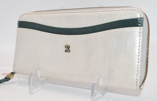 HOBO Intl Max Large Zip Around Wallet in Silver & Evergreen