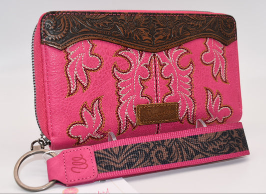 Montana West Wrangler Boot Stitch Bifold Wallet in Hot Pink