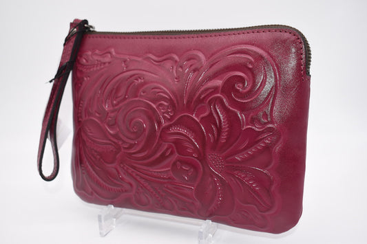 Patricia Nash Cassini Wristlet in Burnished Tooled Magenta