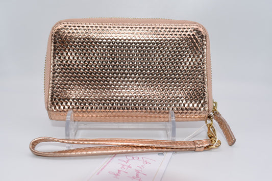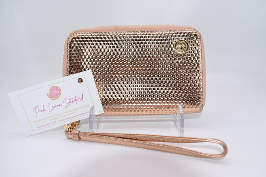 Tory Burch Rosegold Honeycomb Zip Around Wristlet