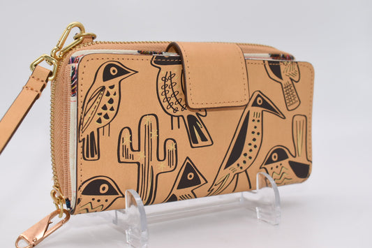 Vera Bradley Vachetta Brown Resort Wristlet in "Roadrunner Cactus"