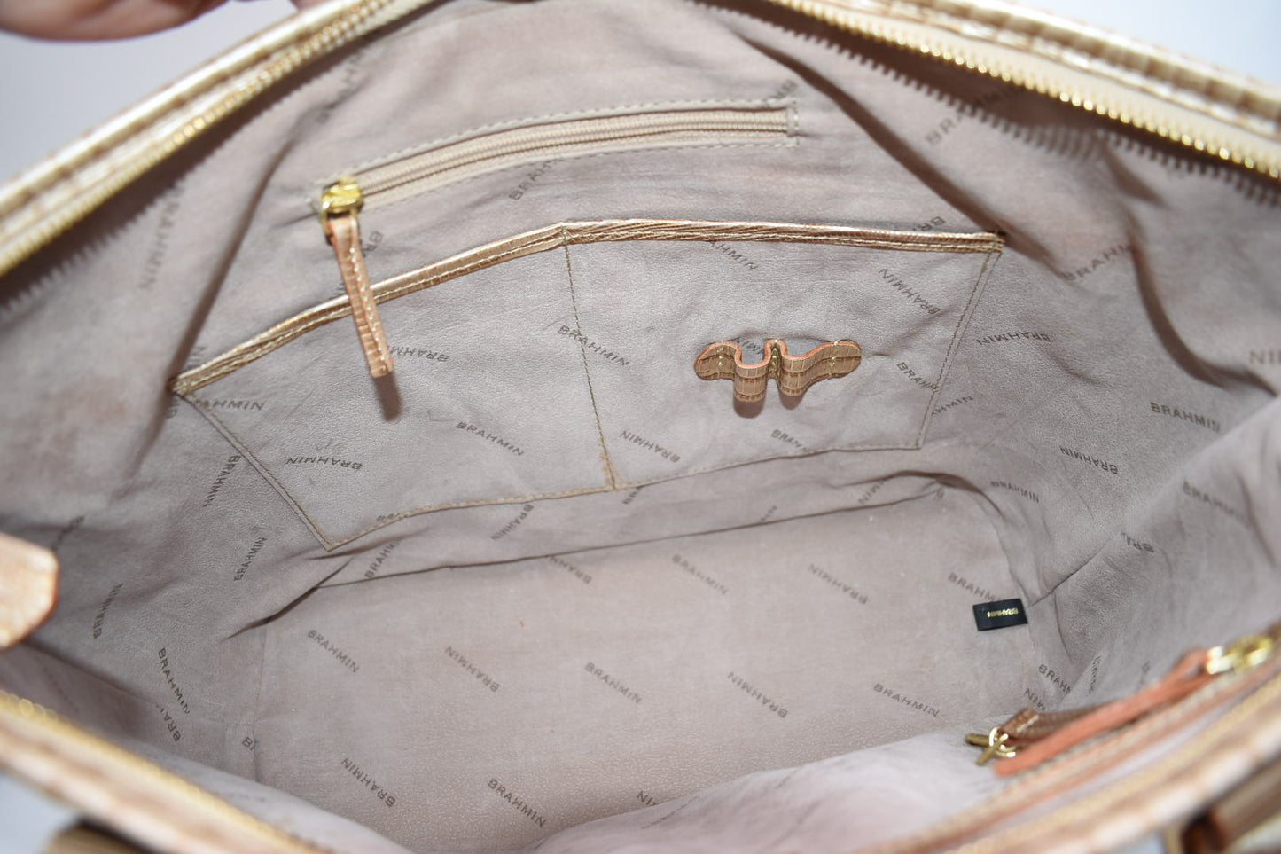 The Medium Asher Tote is a lightweight bag with plenty of interior space. This structured style is polished and practical, featuring Brahmin's signature organizational details.