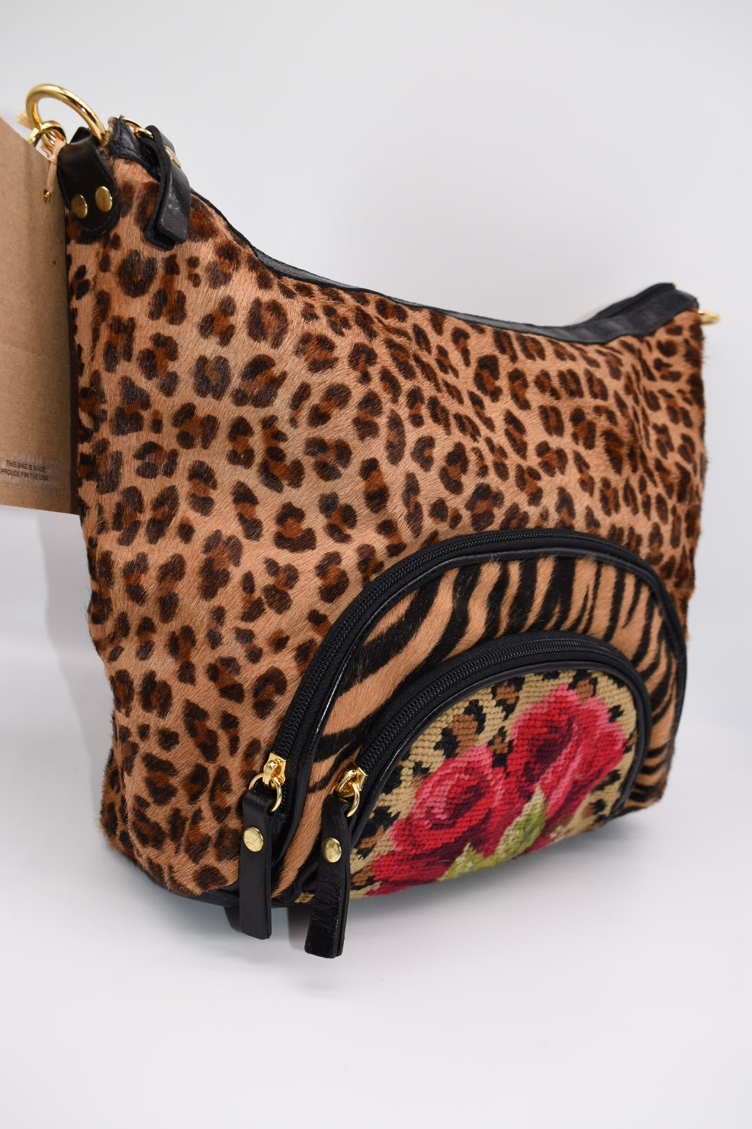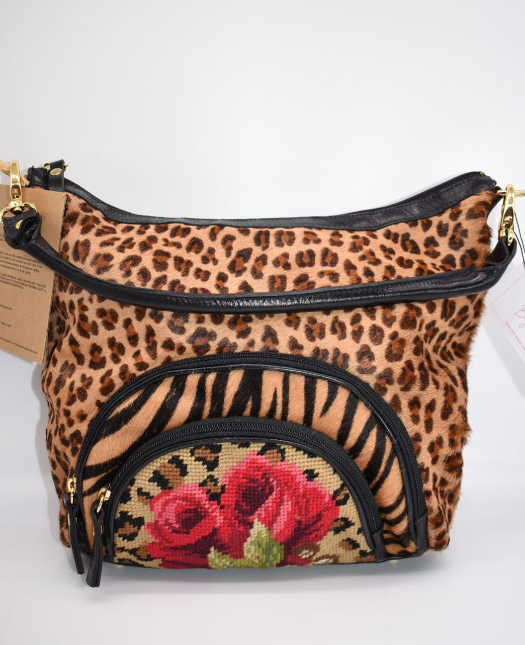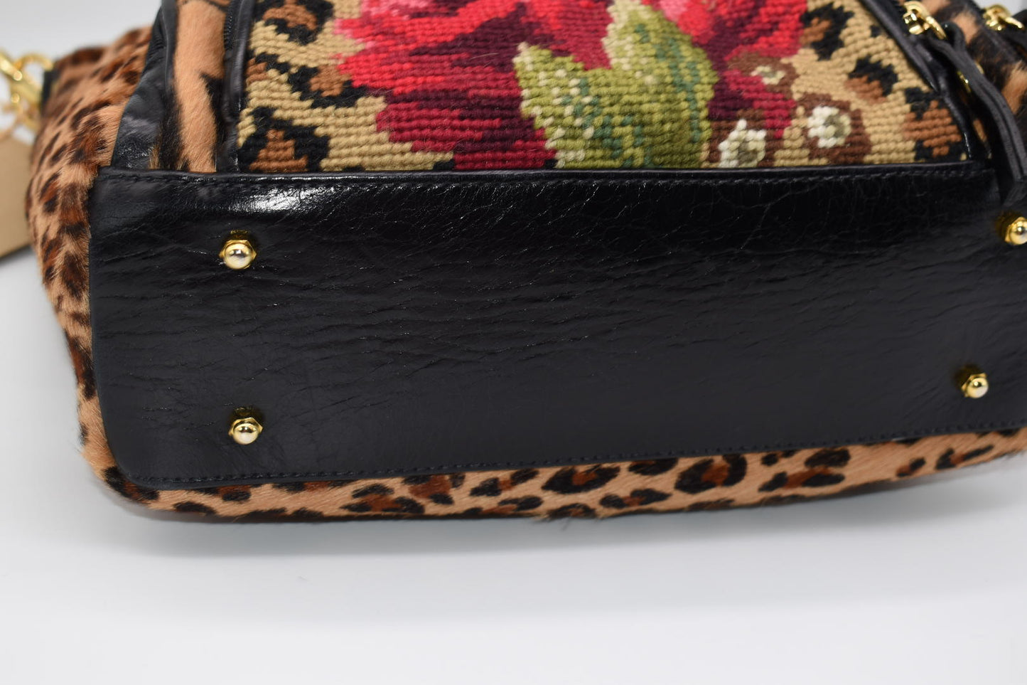 Clever Carriage Company Leopard & Hand Needlepoint Satchel Bag
