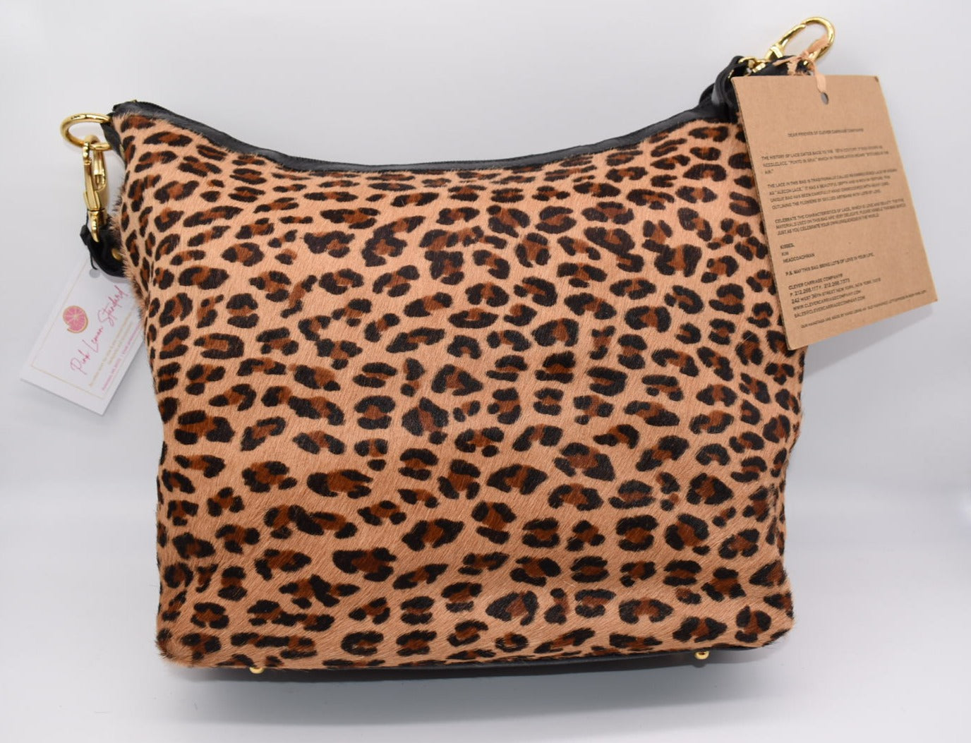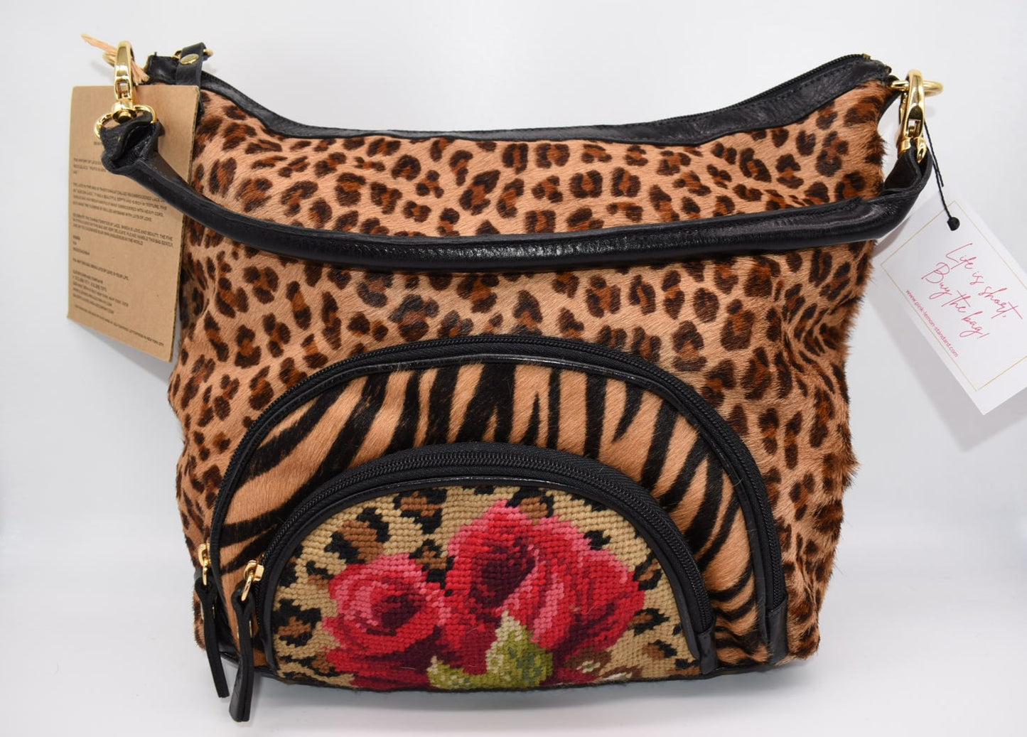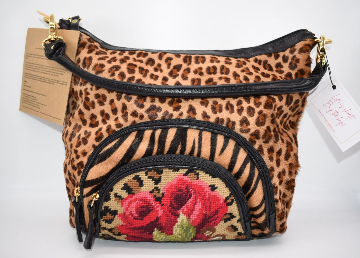 Clever Carriage Company Leopard & Hand Needlepoint Satchel Bag