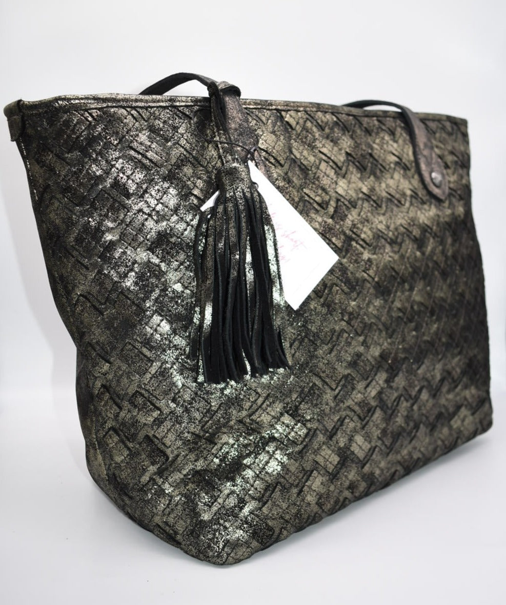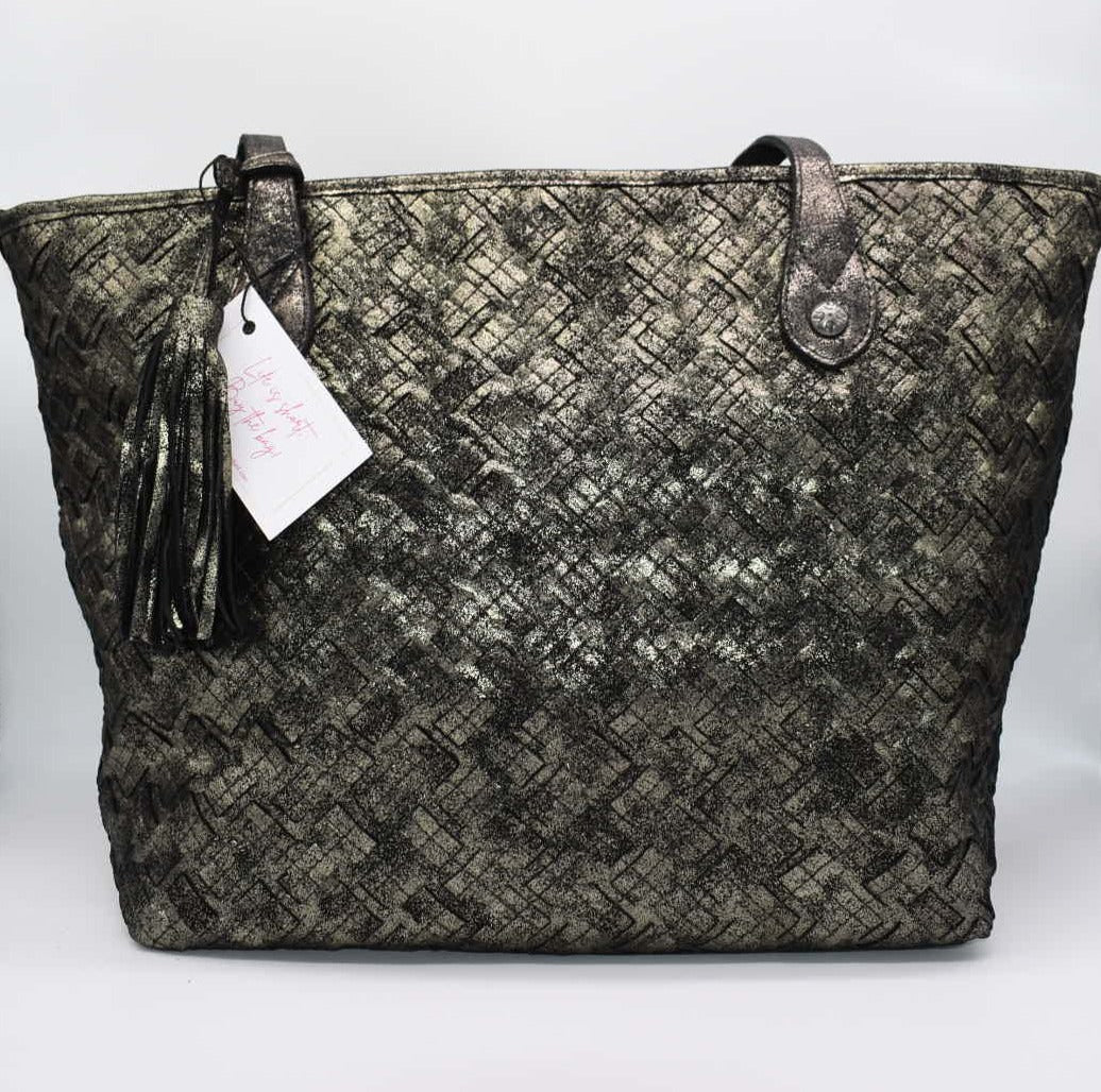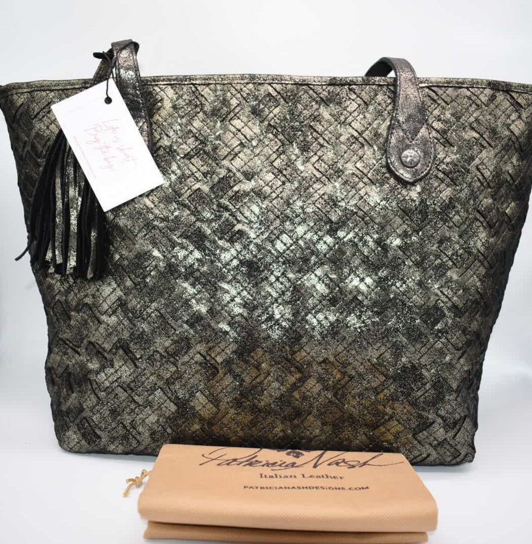 Patricia Nash Large Tote Bag in Woven Metallic Gold & Black