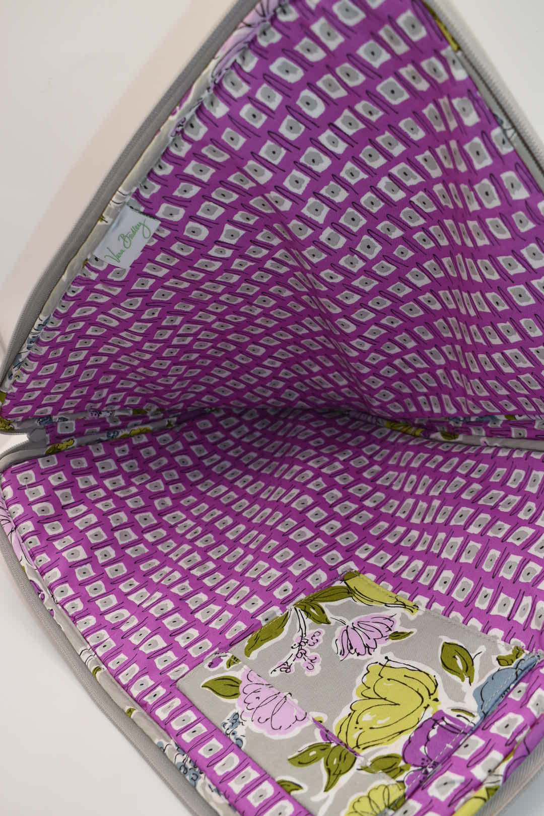 Suitable for work or play, this chic Vera Bradley laptop sleeve offers a secure, stylish way to take your laptop on the go. Padded with a lightweight, protective foam, it boasts a handy inside pocket to stash accessories and a double-zip closure for added security.