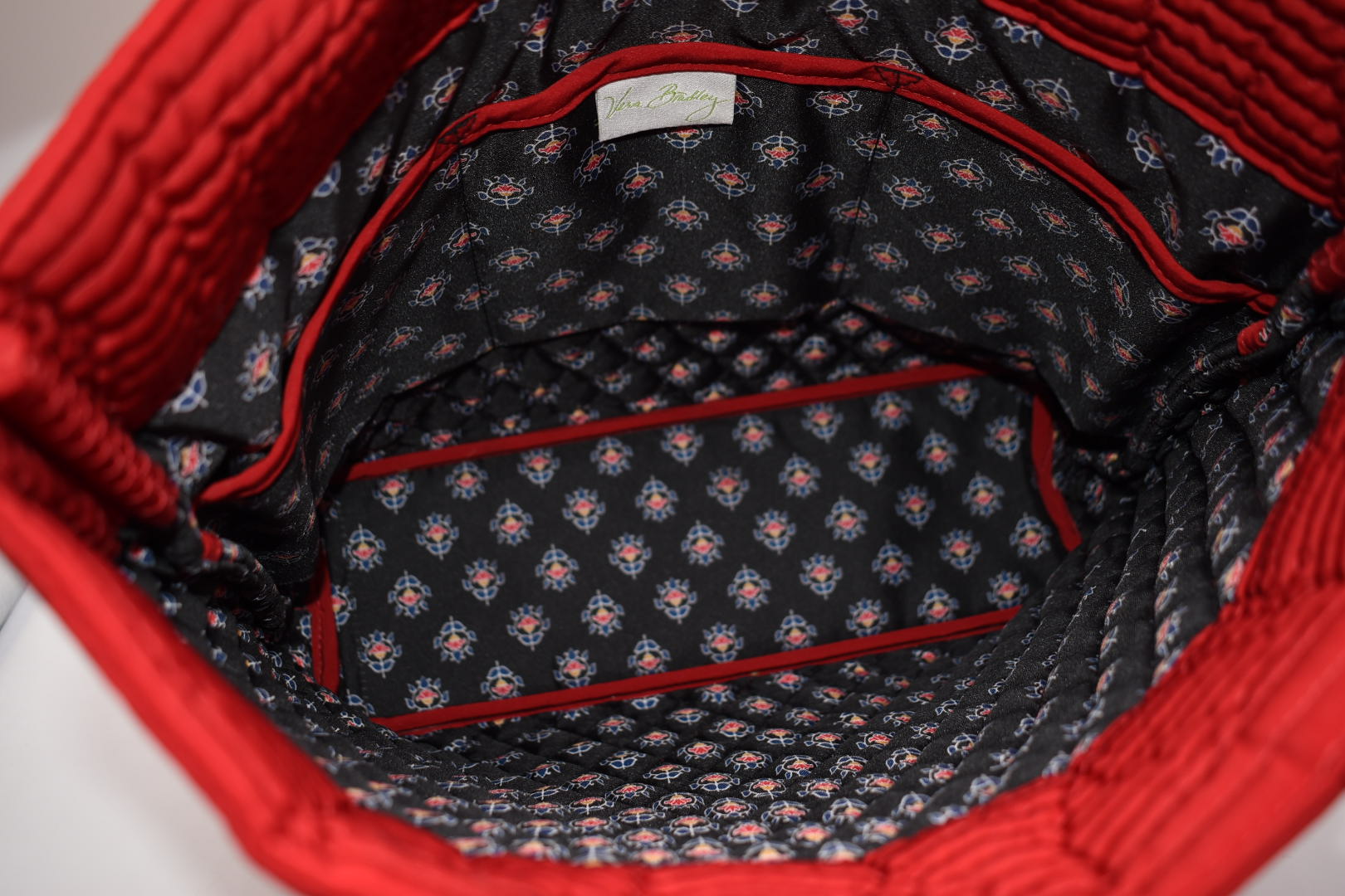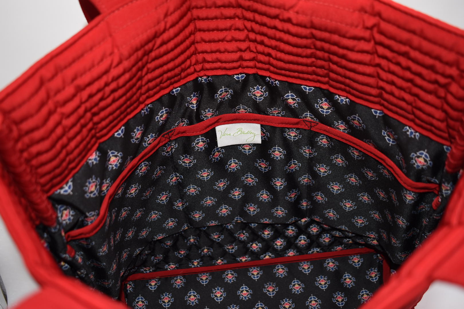 Tote the essentials while showing off fun, feminine style! Boasting a colorful design with a signature print, a trio of interior pockets, a tortoise toggle closure and a removable slip-in baseboard, this bag makes a chic and convenient carryall.