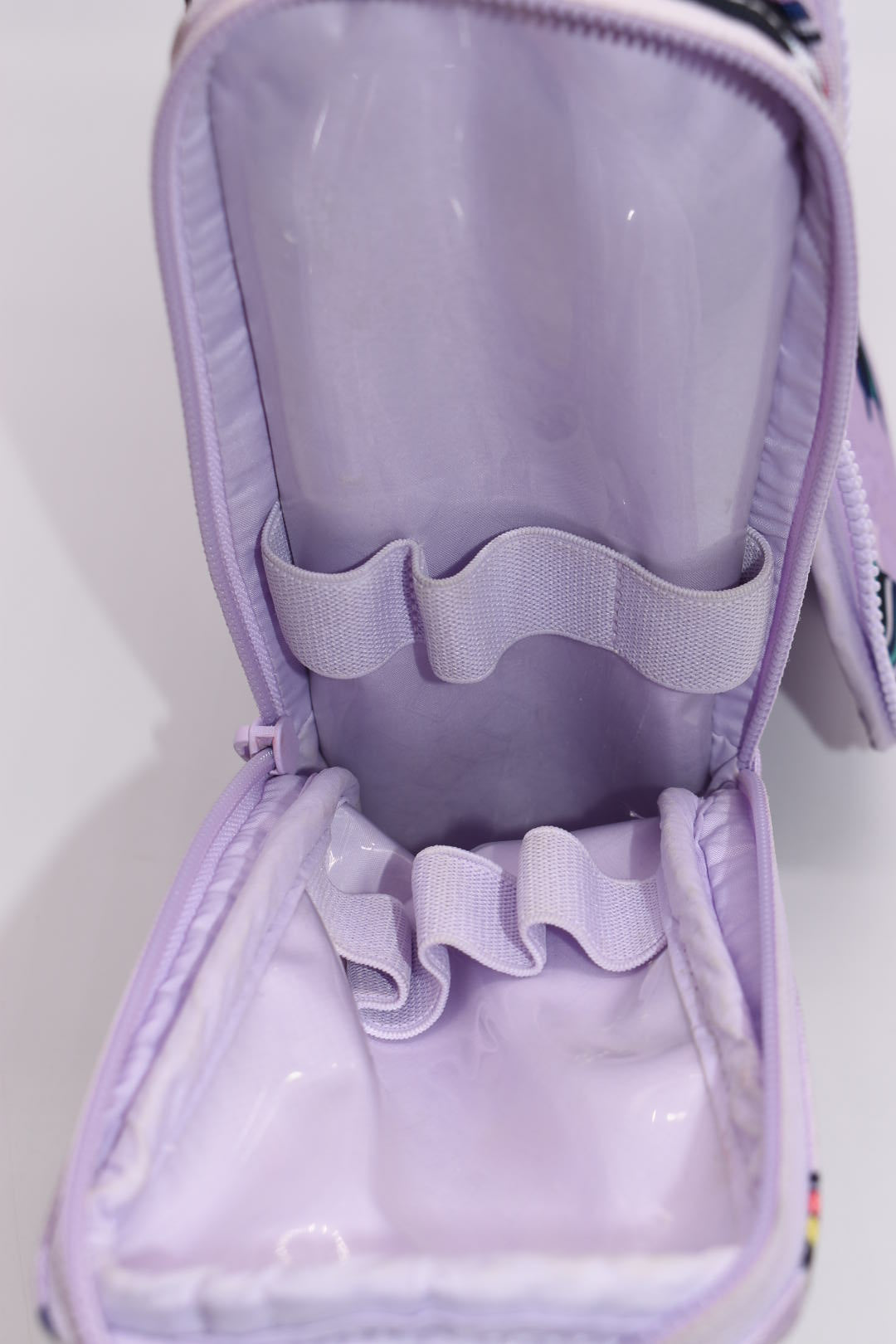 - Interior features a fully plastic-lined zip pocket, one mesh zip pocket and an elastic mesh slip pocket