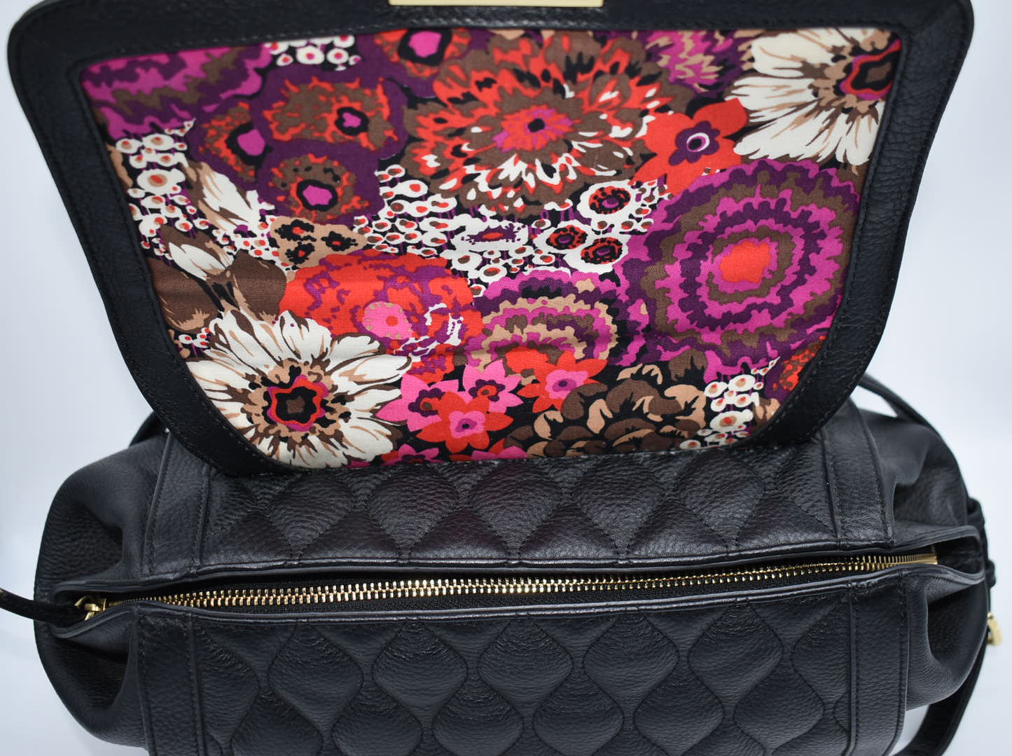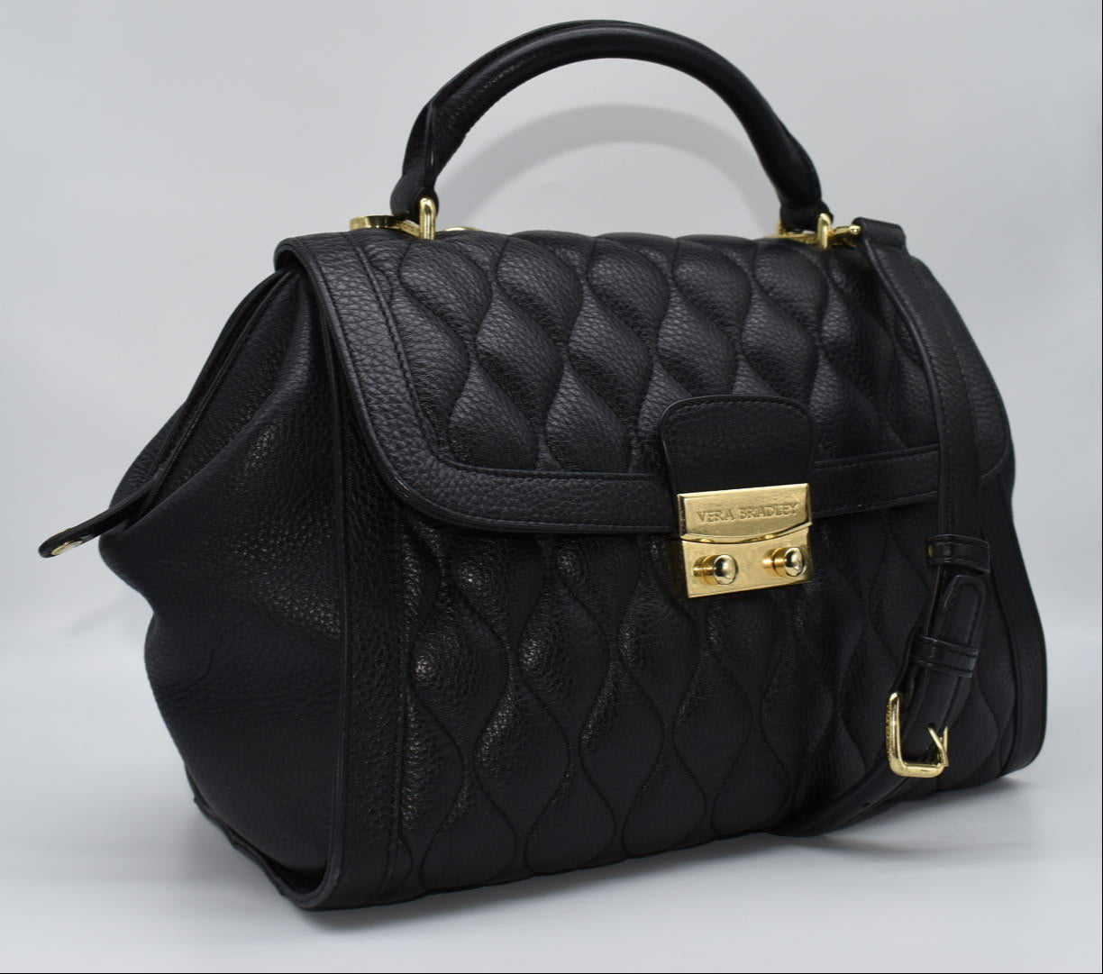 Vera Bradley Quilted Leather Stella Satchel Bag in Black