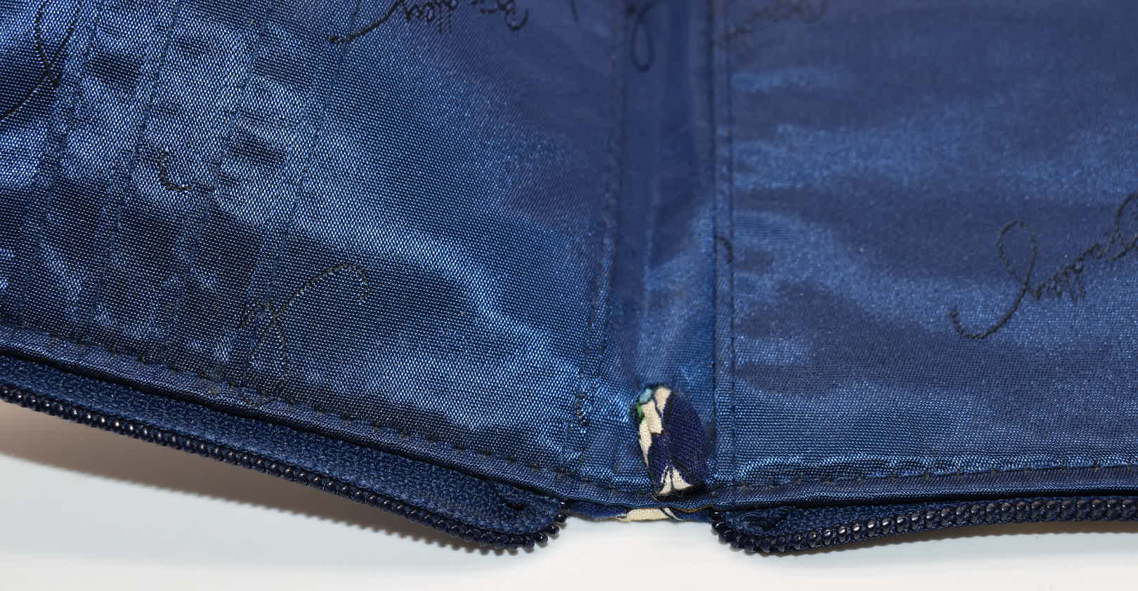 - Interior: six credit card slots, ID window, checkbook slot and pen loop