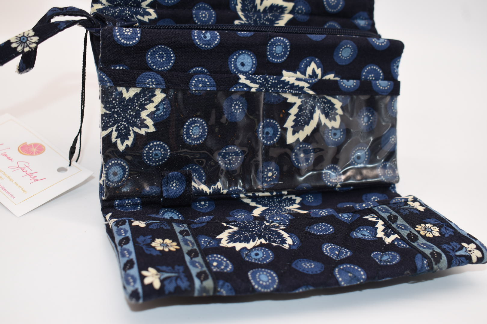 Vintage Vera Bradley Strap Crossbody Wallet in "Blue Coin -2003" Pattern