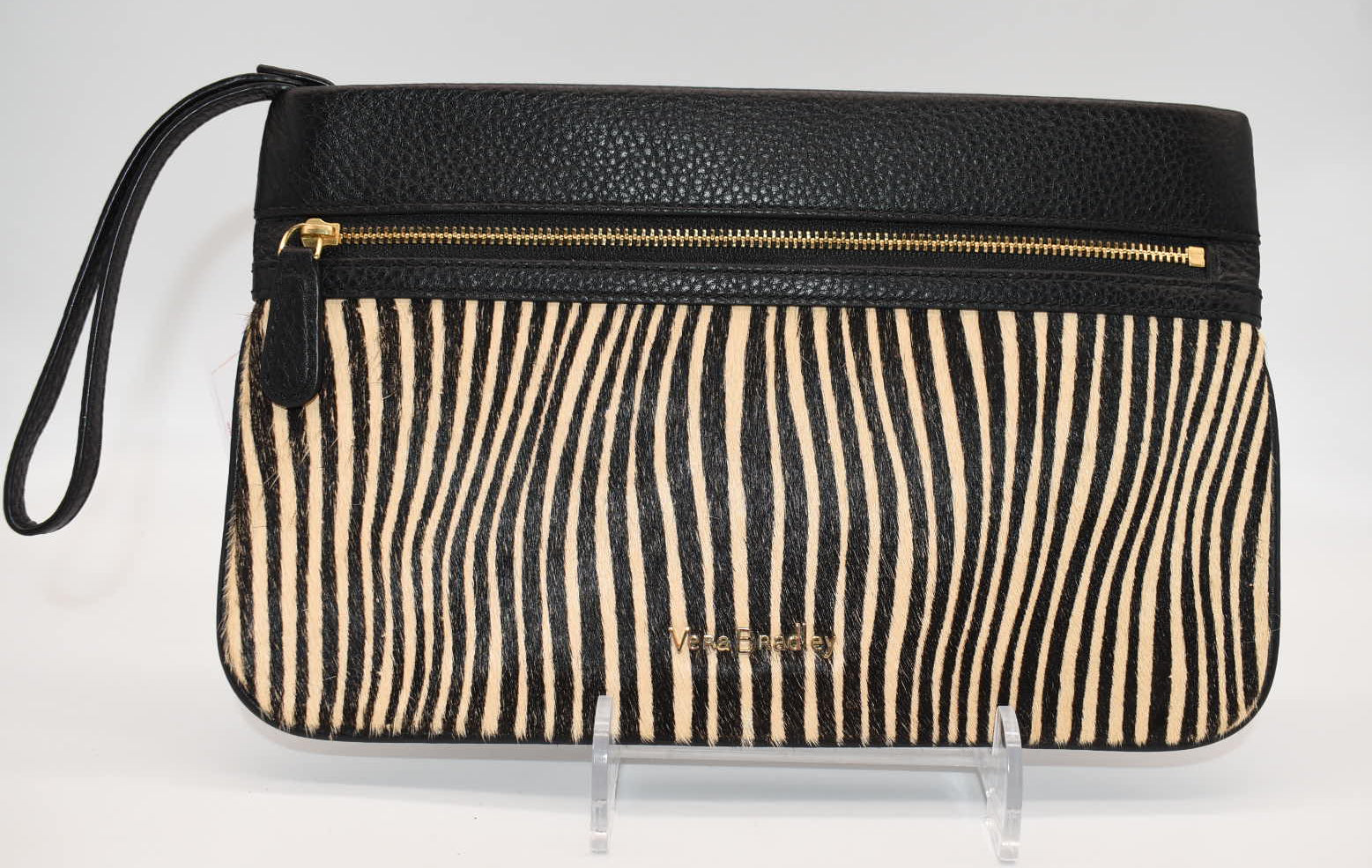 Vera Bradley Mia Leather Wristlet in "Uptown Stripes" Pattern