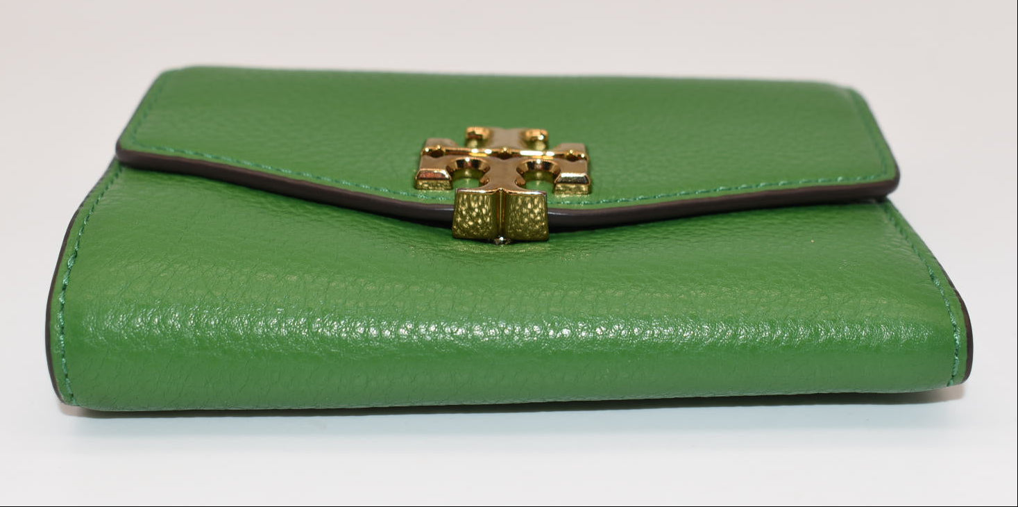 Tory Burch Kira Pebbled Medium Flap Wallet in Poblano Green