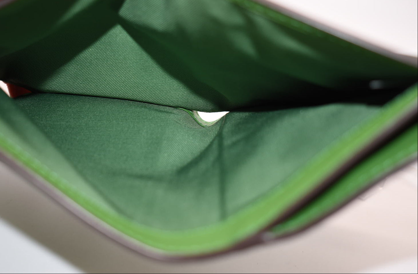 - 1 interior zipper pocket, 8 card slots, 1 bill pocket & two slip pockets behind card slots