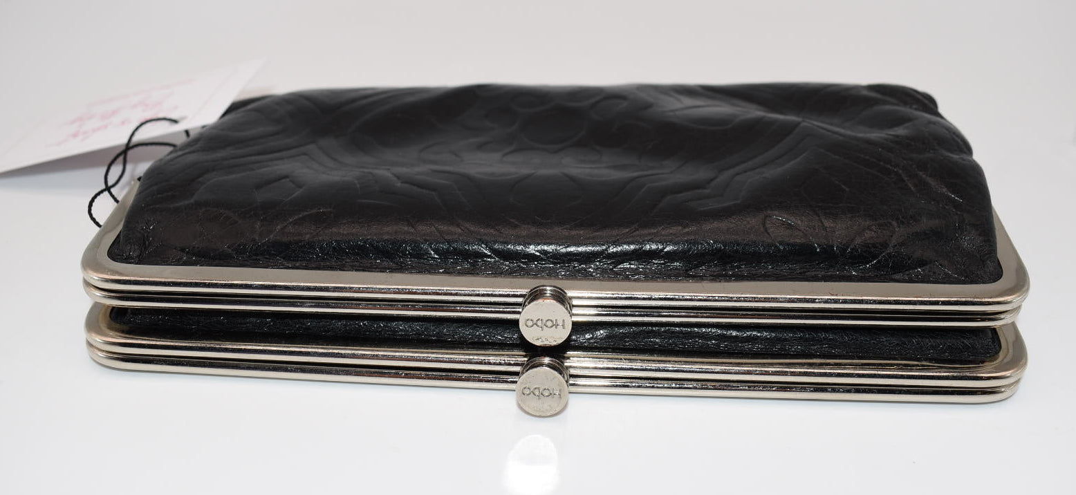 HOBO Lauren Clutch Wallet in Black Embossed Leather