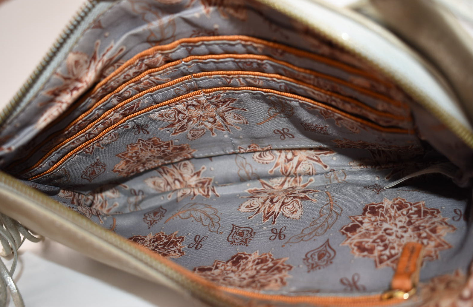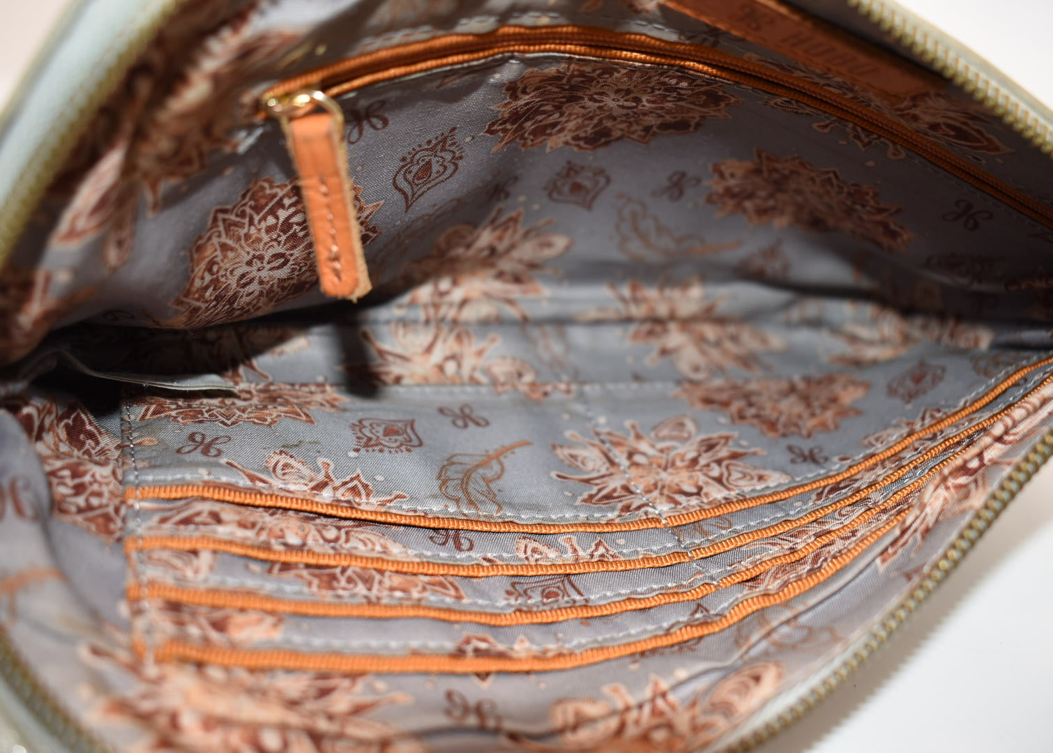 - Interior Front: Bill slot & 6 credit card slots; Interior Back: Zip pocket