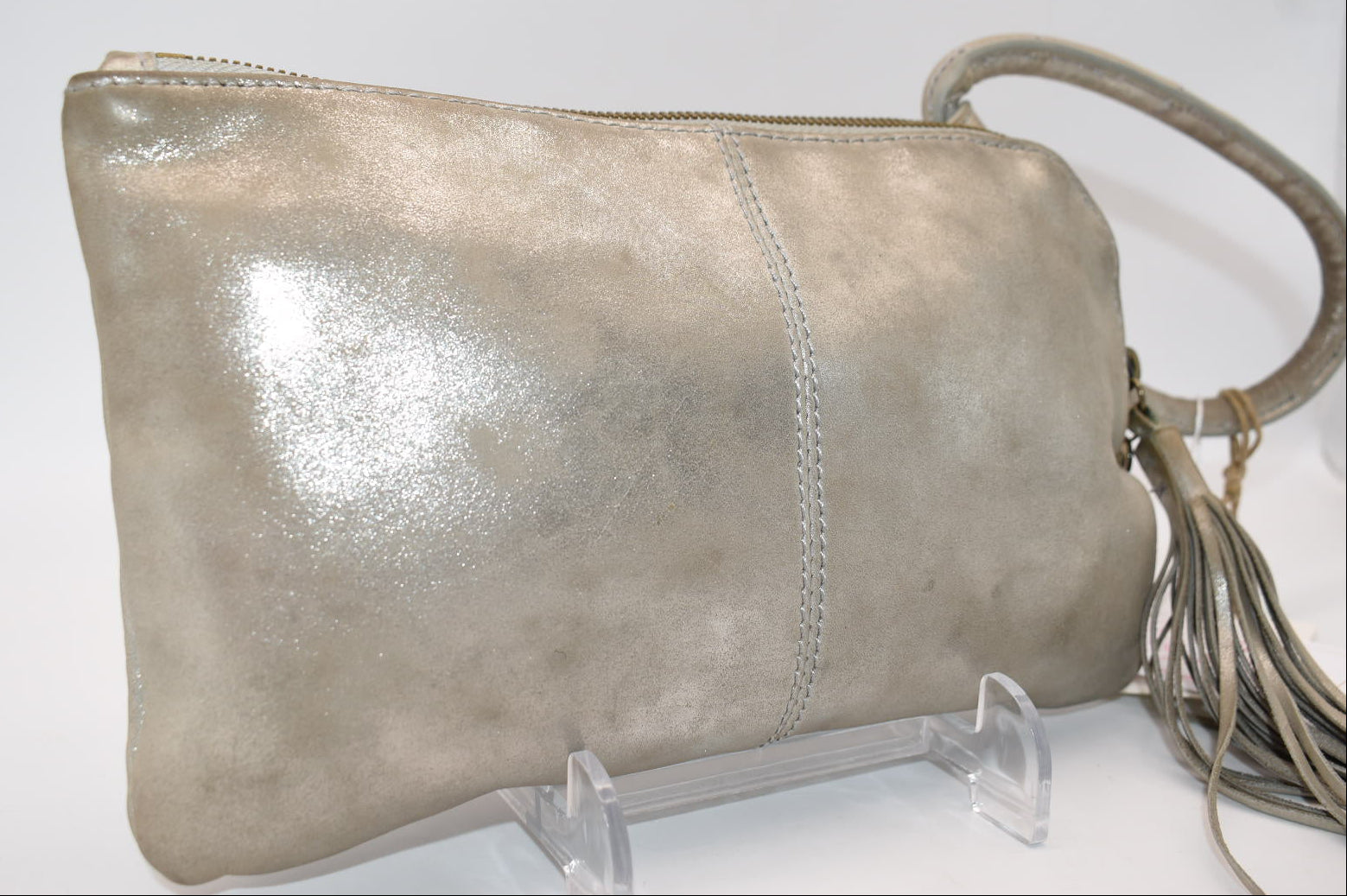 HOBO INTL Sable Whipstitch Tassel Wristlet in Granite Gray Leather