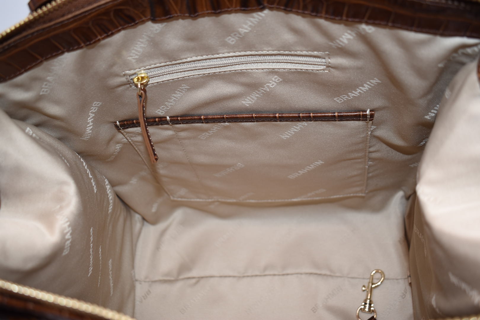 - Interior zip pocket