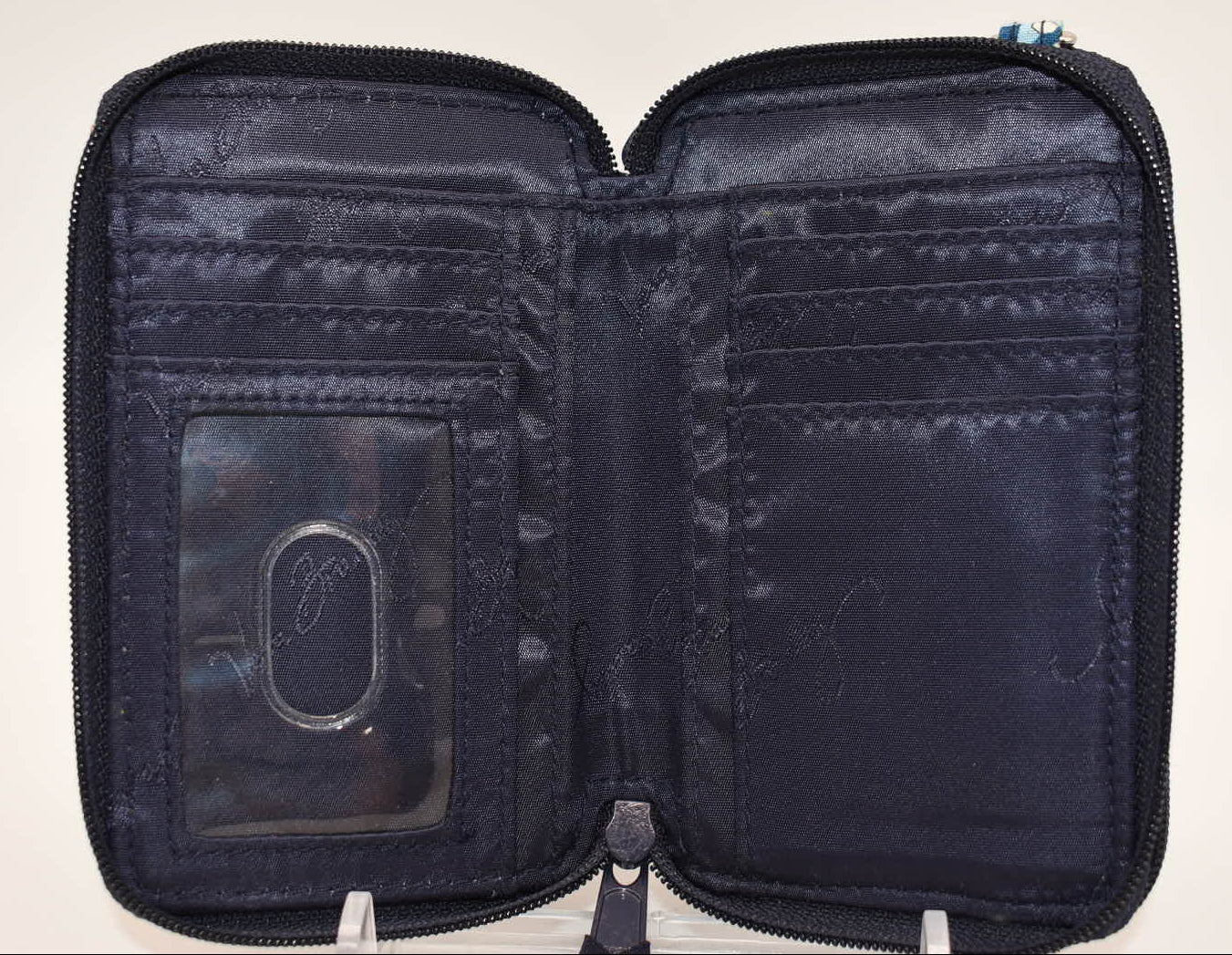 - Interior features 10 card slips, four slip pockets, one bill pocket, one interior back compartment pocket and one ID window