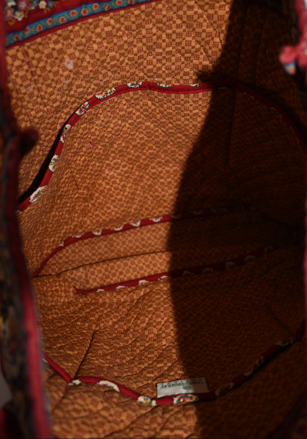Vintage Vera Bradley Large Vera Tote Bag in "Red Leaf" Pattern